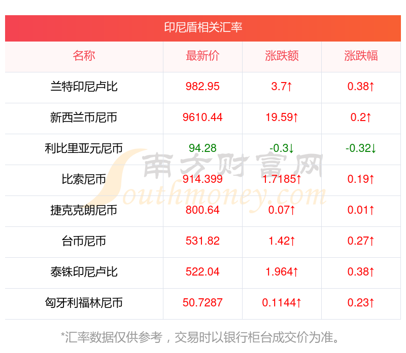 南方财富网为您提供印尼盾对尼日利亚奈拉汇率最新价格详情。