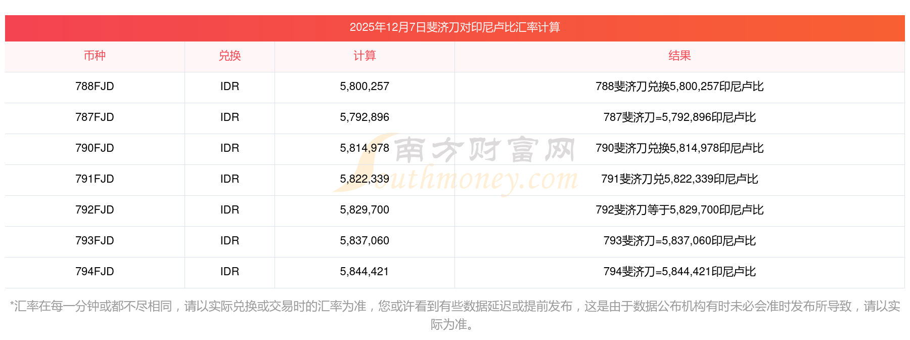 南方财富网为您提供斐济刀对印尼卢比汇率最新价格详情。