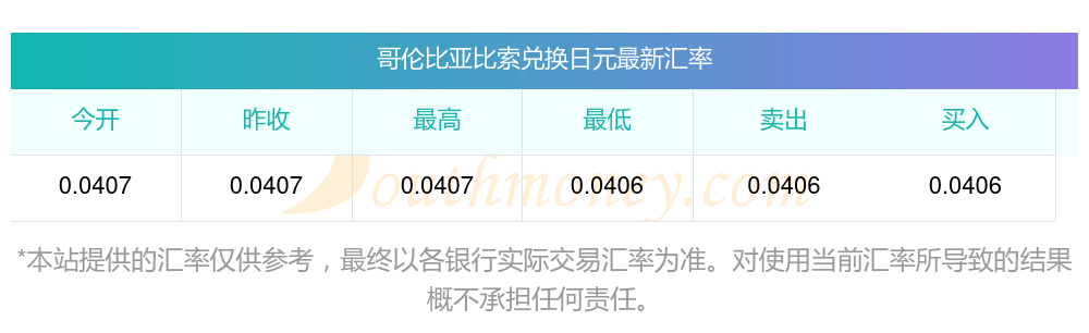 哥伦比亚比索对日元汇率今日?2025-12-10
