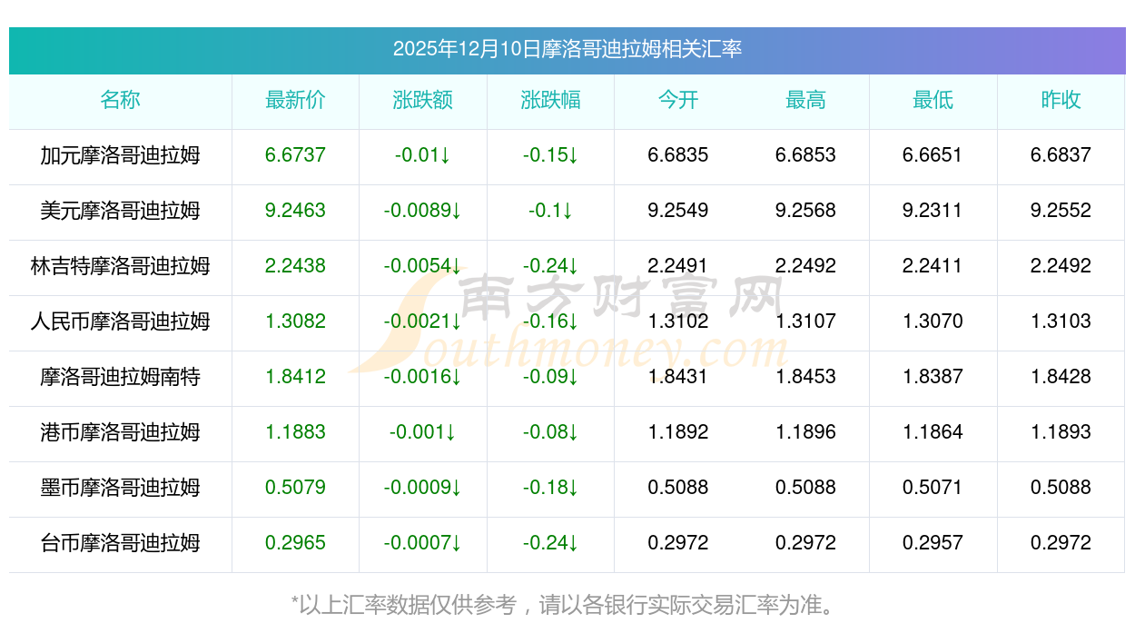 2025年12月10日摩洛哥迪拉姆相关汇率查询