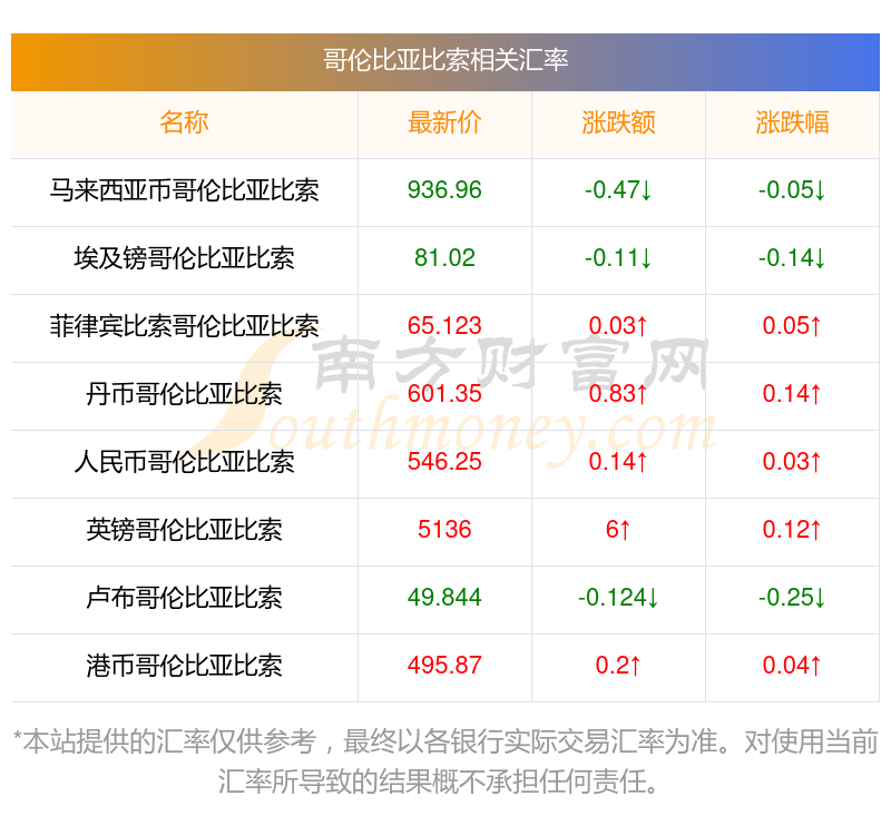 南方财富网为您提供哥伦比亚比索对巴币汇率最新价格详情。