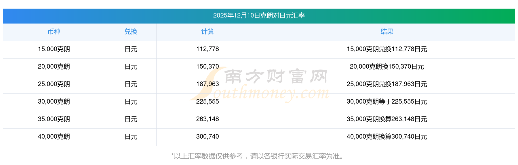 捷克克朗今日汇率多少?12-101捷克克朗对日元汇率查询