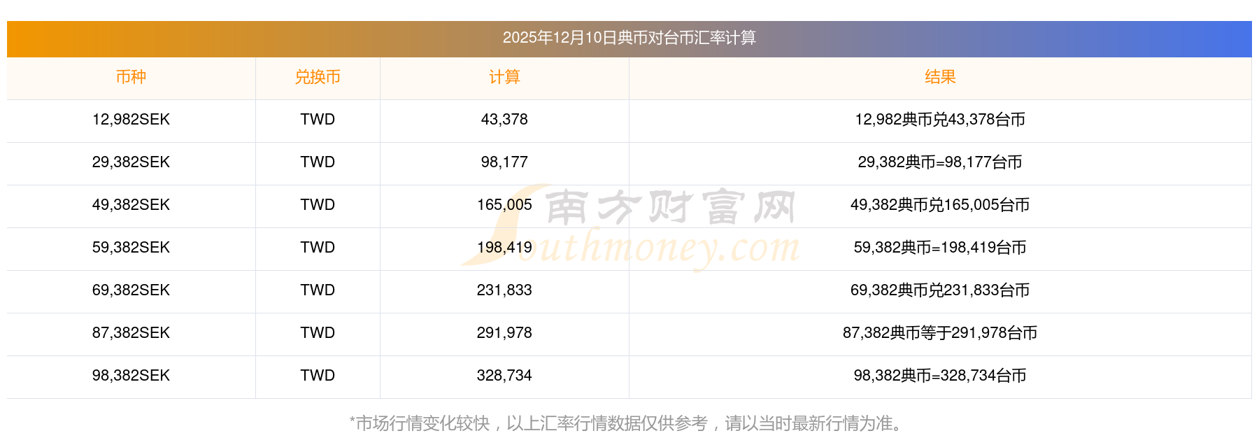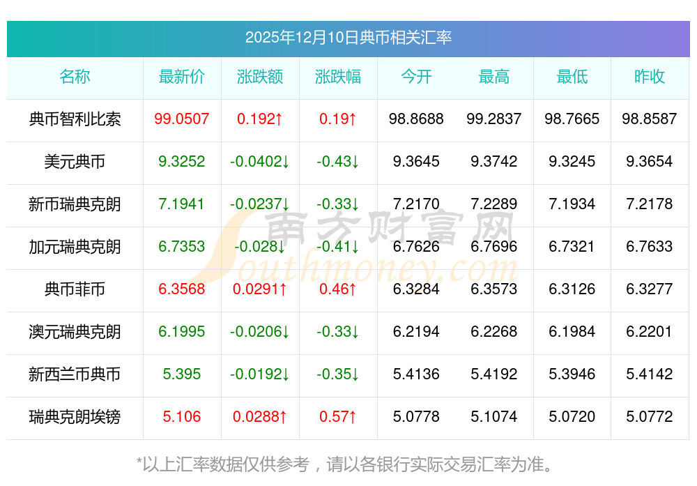 33典币兑换台币结汇行情 典币汇率报价查询12月10日