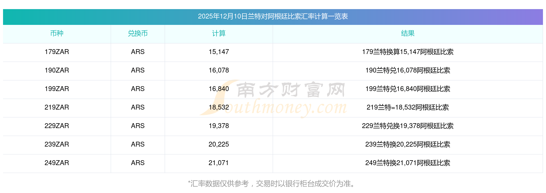 南方财富网为您提供兰特对阿根廷比索汇率最新价格详情。
