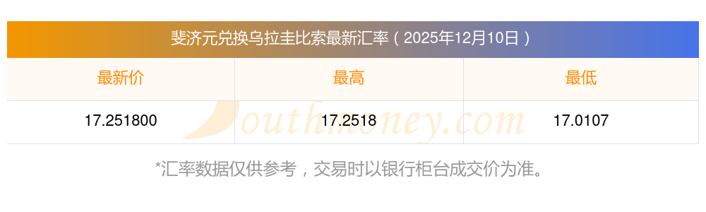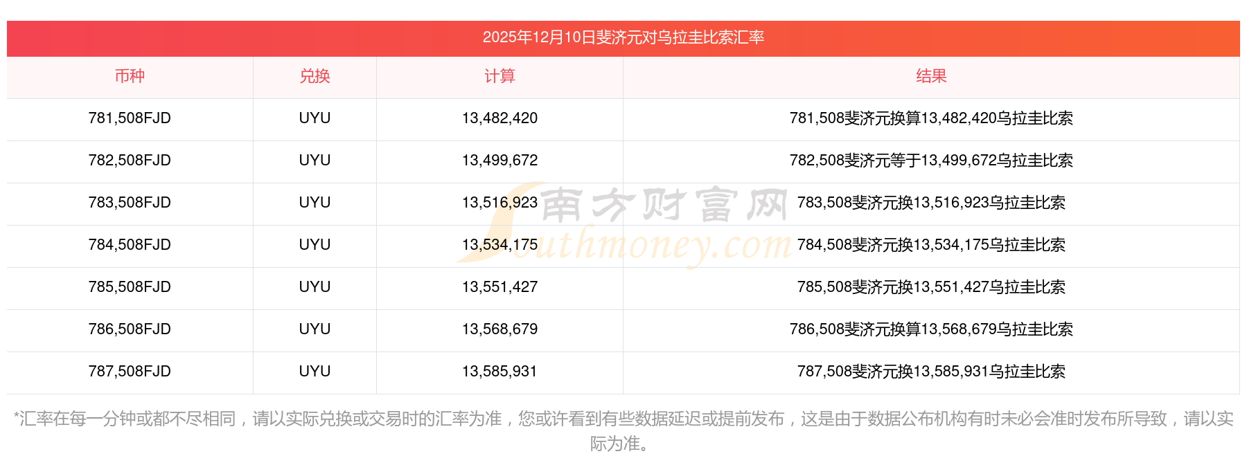 今日斐济元汇价:2025年12月10日11斐济元兑乌拉圭比索汇价一览表