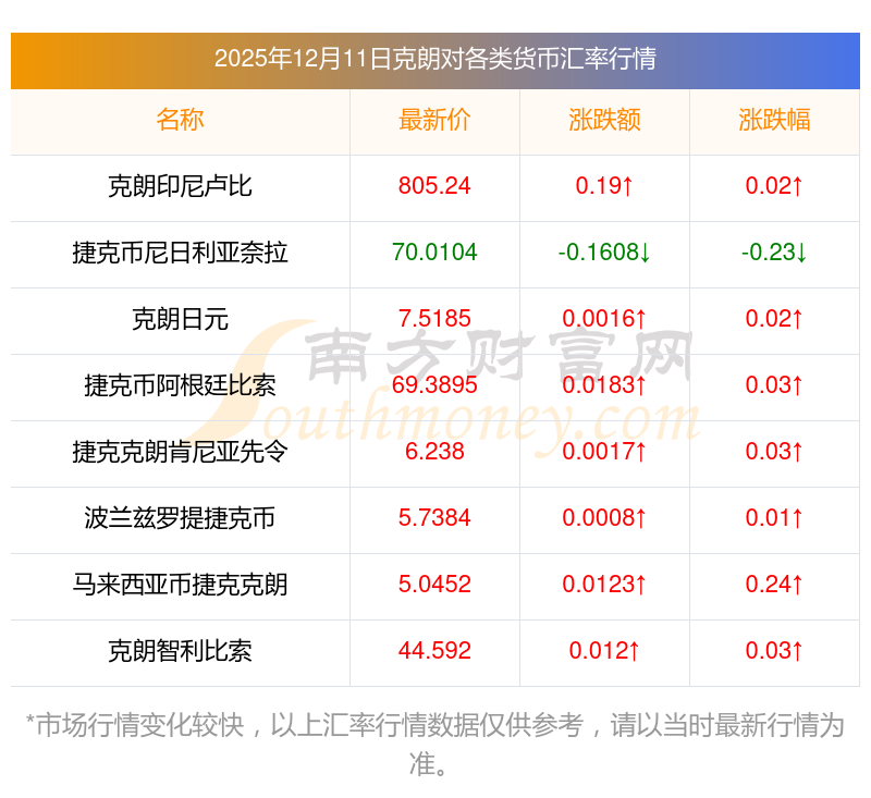 根据2025年12月11日汇率计算,CZK兑换MXN汇率最新价0.877105:今日开价0.8769,昨日收价0.8766,最高价0.8775,最低价0.8759。