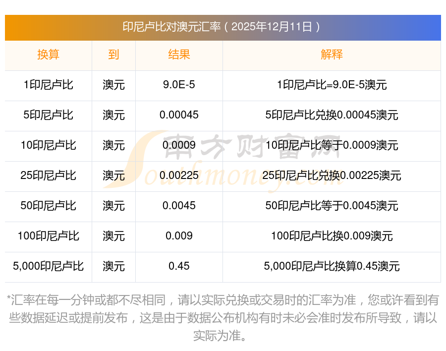 今天印尼卢比购汇查询:440印尼卢比对澳元汇率多少?2025-12-11