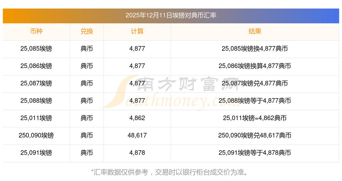 今日货币汇率调整:1024埃镑对典币汇率多少?2025/12/11