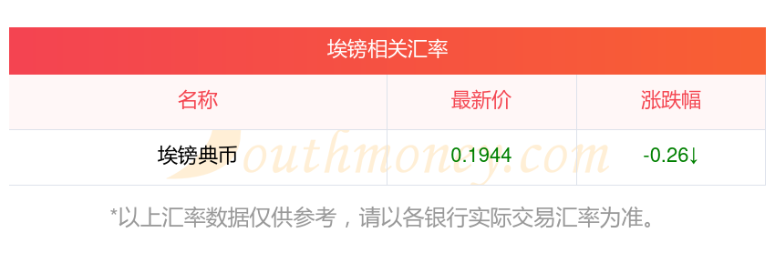 南方财富网为您提供埃镑对典币汇率最新价格详情。