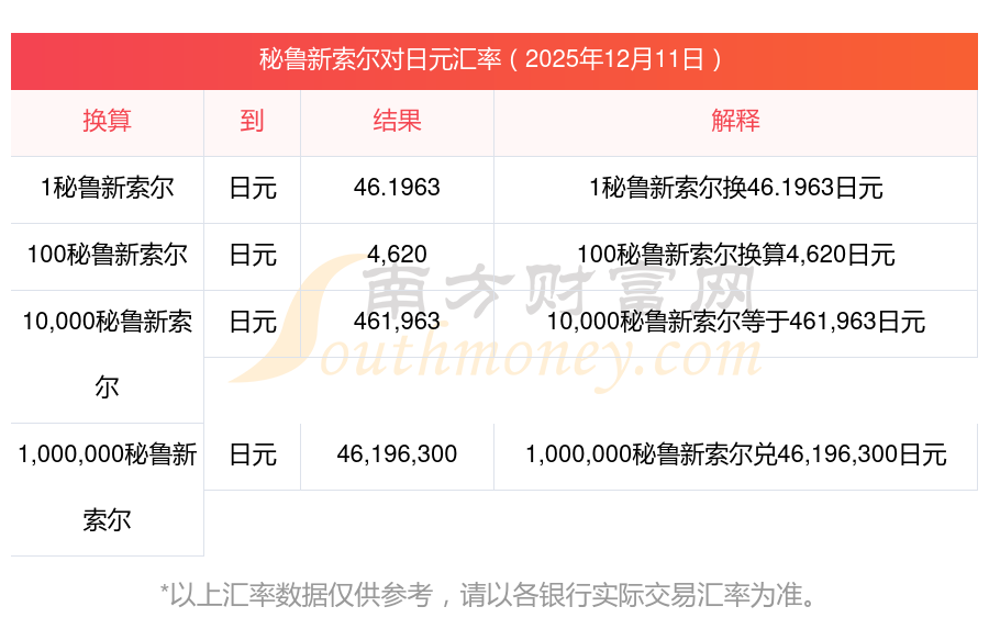 南方财富网为您提供秘鲁新索尔对日元汇率最新价格详情。