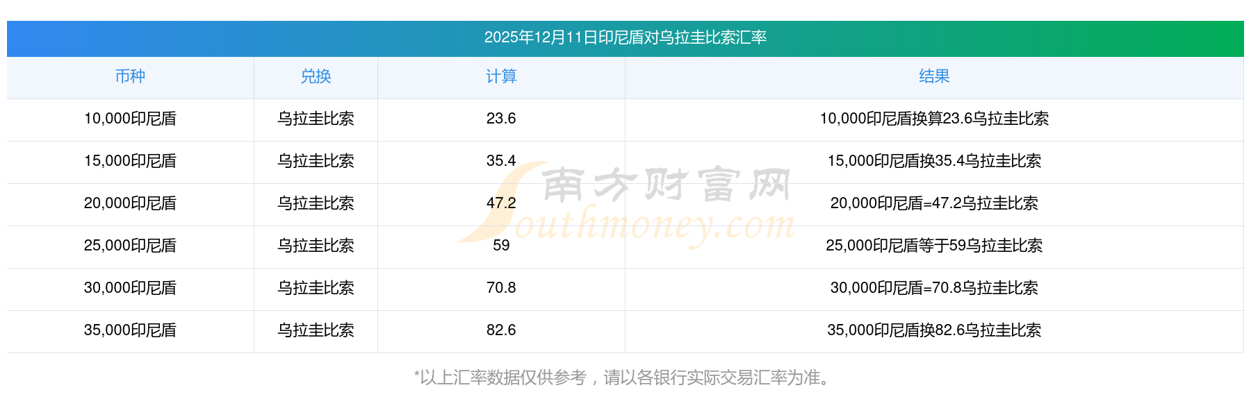 南方财富网为您提供印尼盾对乌拉圭比索汇率最新价格详情。