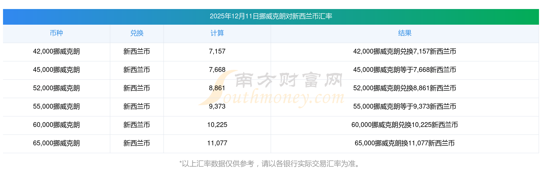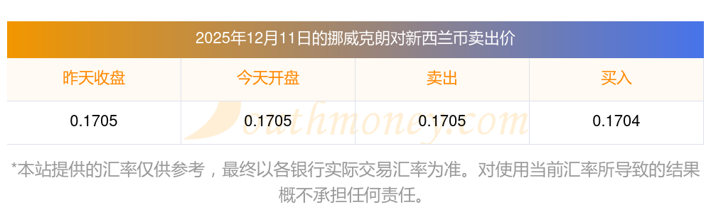 今日汇率换_挪威克朗与新西兰币兑回汇率多少?(2025年12月11日)