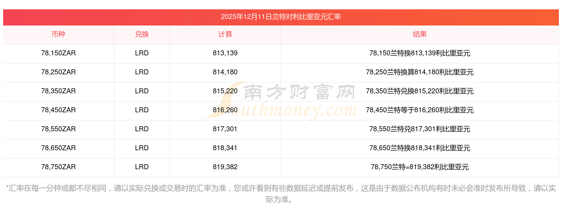 2025/12/11今天兰特对利比里亚元实时汇率多少