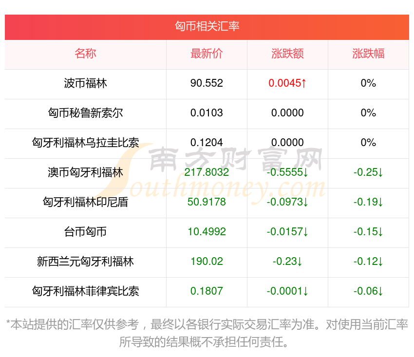 南方财富网为您提供匈币对南特汇率最新价格详情。