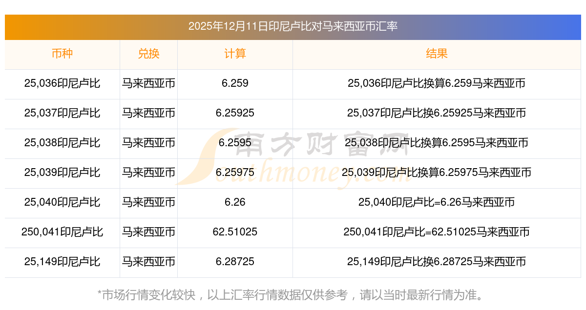 今日汇率换算:60印尼卢比对换马来西亚币汇率是多少2025年12月11日
