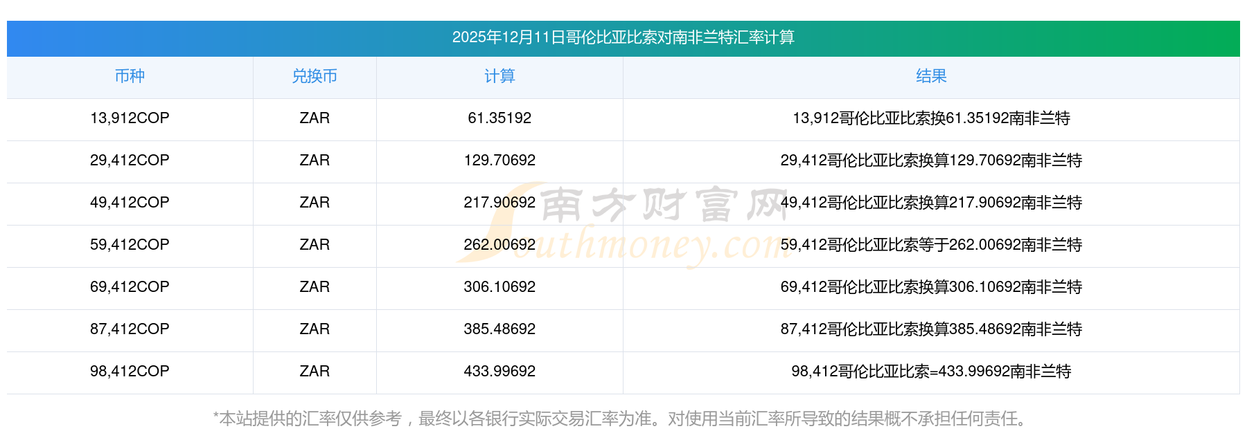 现在95哥伦比亚比索换多少南非兰特(2025年12月11日)