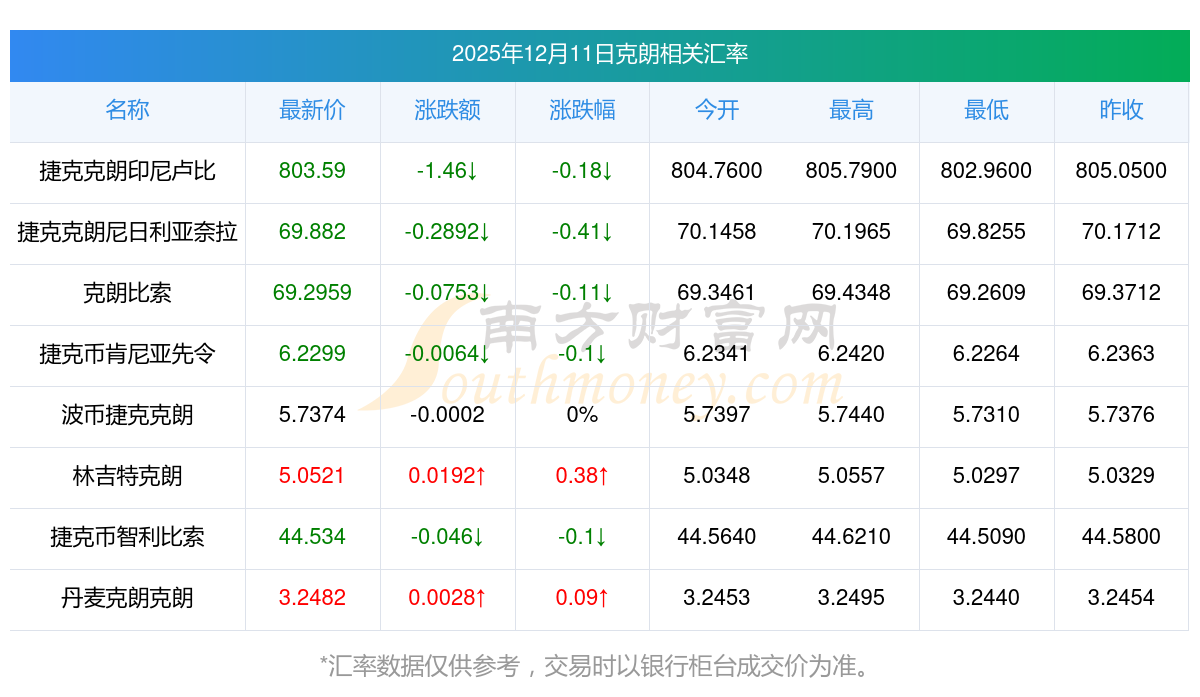 2025年12月11日克朗相关汇率查询