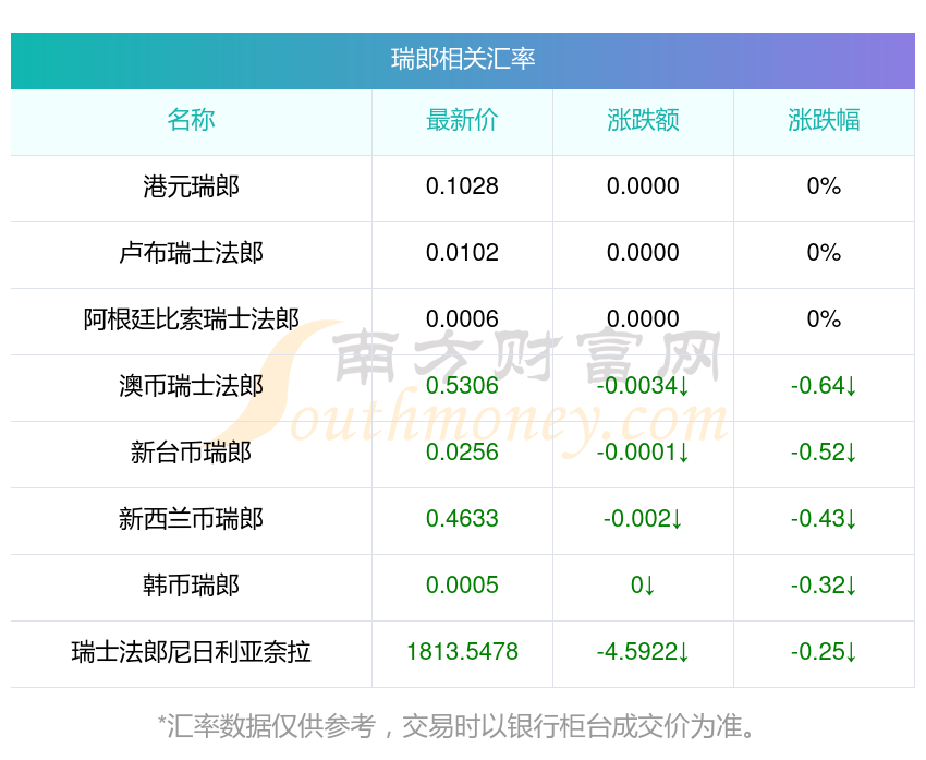 南方财富网为您提供瑞郎对民比汇率最新价格详情。