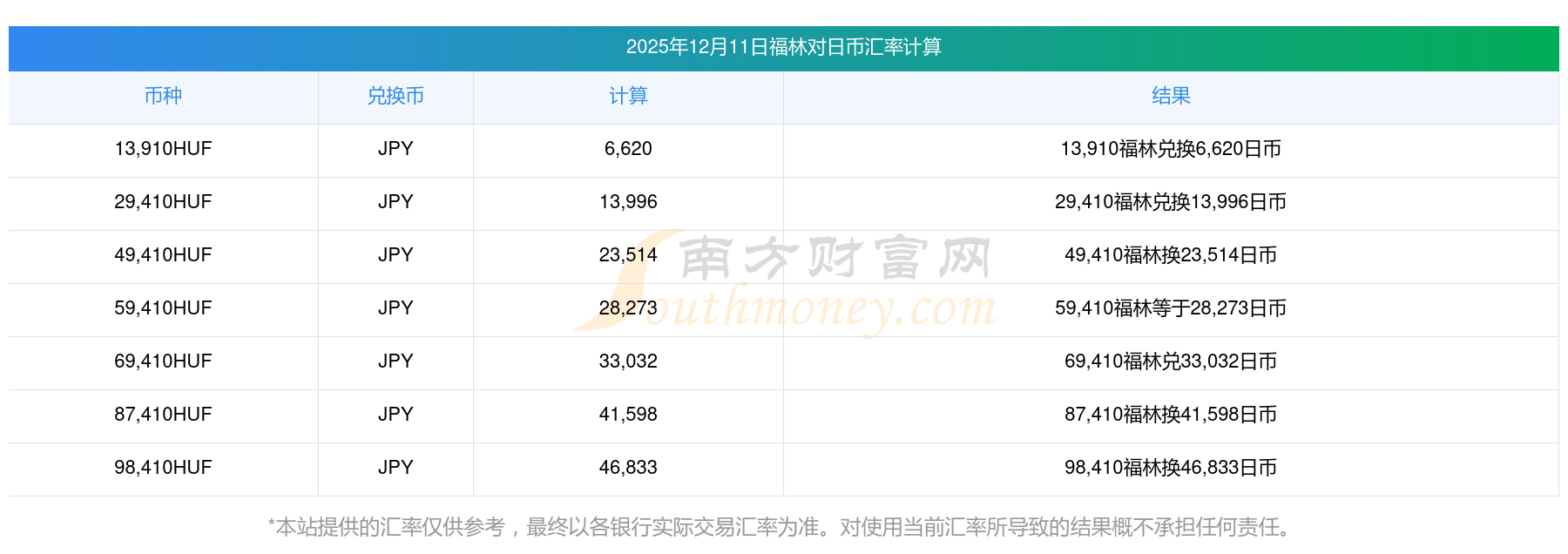 南方财富网为您提供福林对日币汇率最新价格详情。
