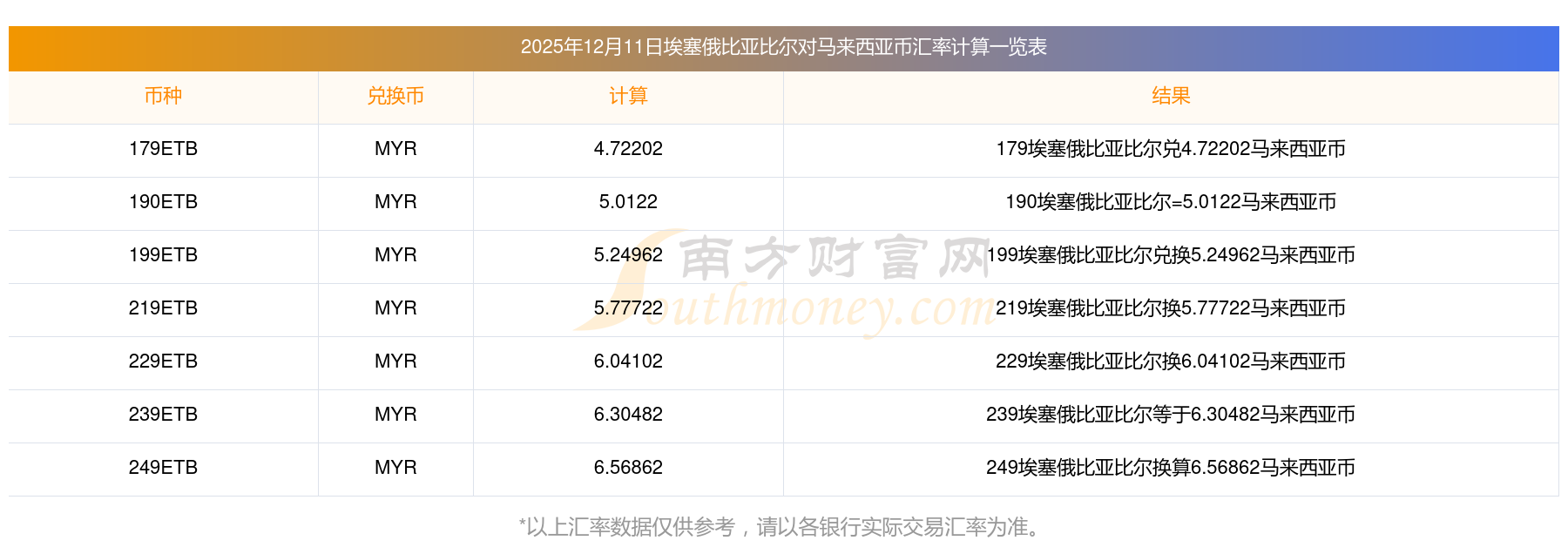 2025年12月11日6埃塞俄比亚比尔计算马来西亚币等于多少?