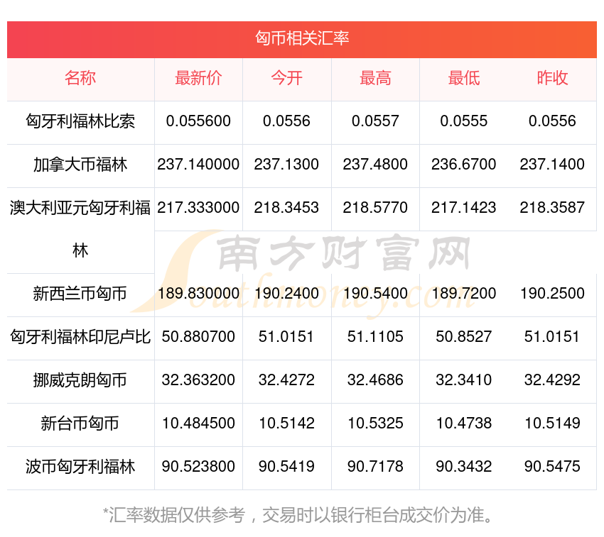 南方财富网为您提供匈币对埃镑汇率最新价格详情。