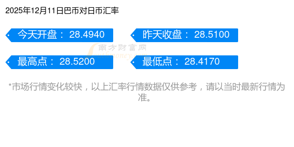 2025年12月11日巴币兑换日币汇率是:28.519