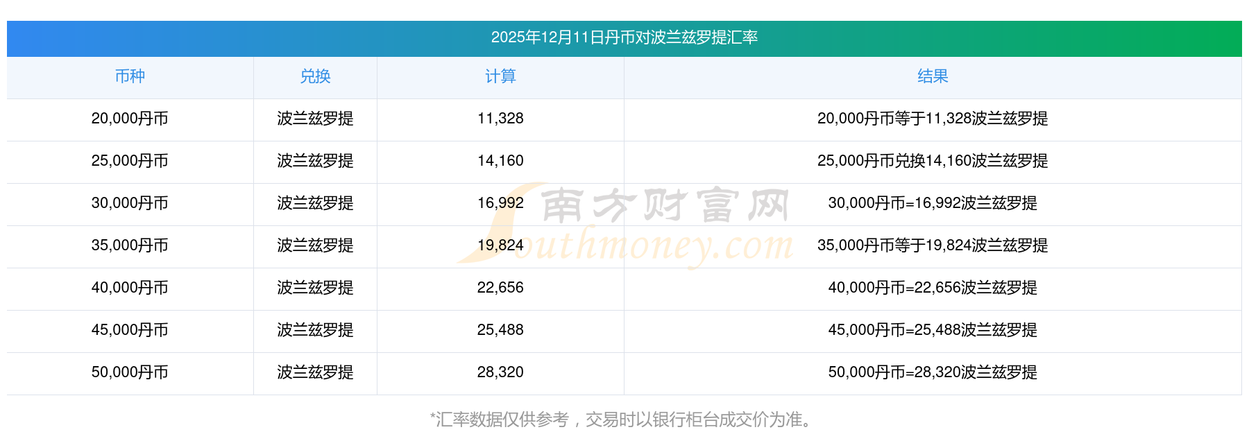 今天外汇价格表 | 将丹币兑换波兰兹罗提查询 2025-12-11