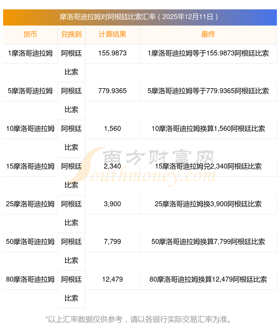 摩洛哥迪拉姆汇率查询:摩洛哥迪拉姆换算阿根廷比索汇率多少?12月11日
