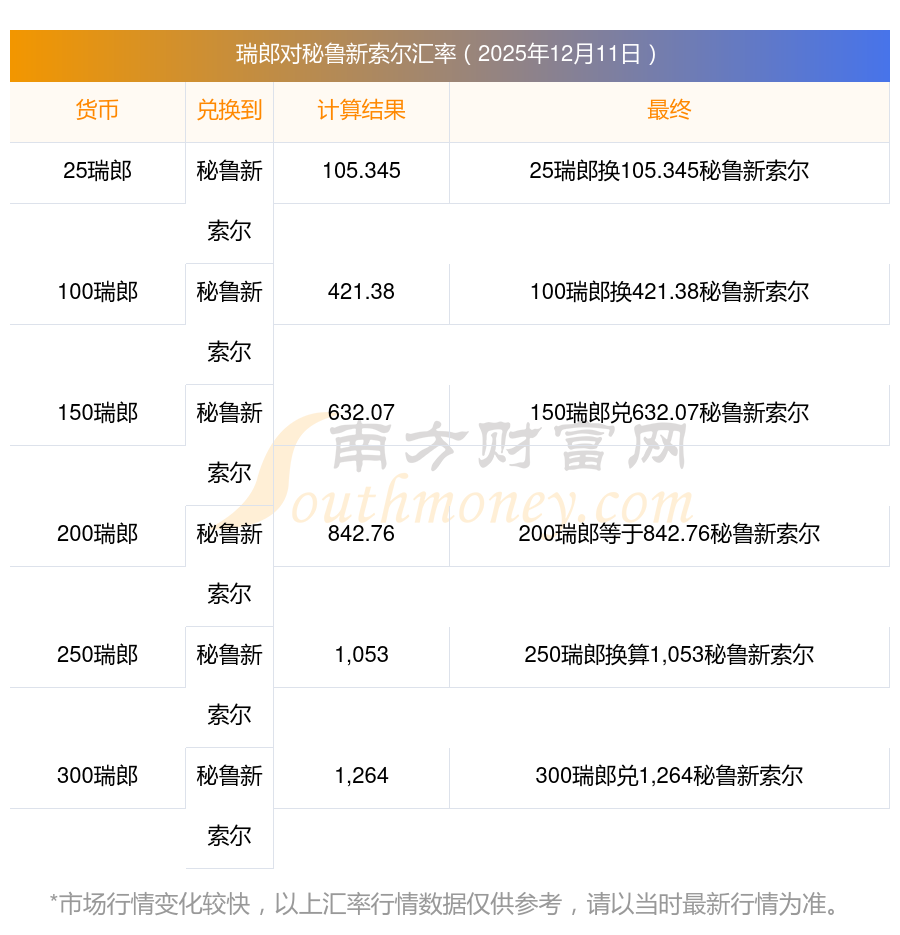瑞郎对秘鲁新索尔汇率多少_今天瑞郎换秘鲁新索尔计算表12-11
