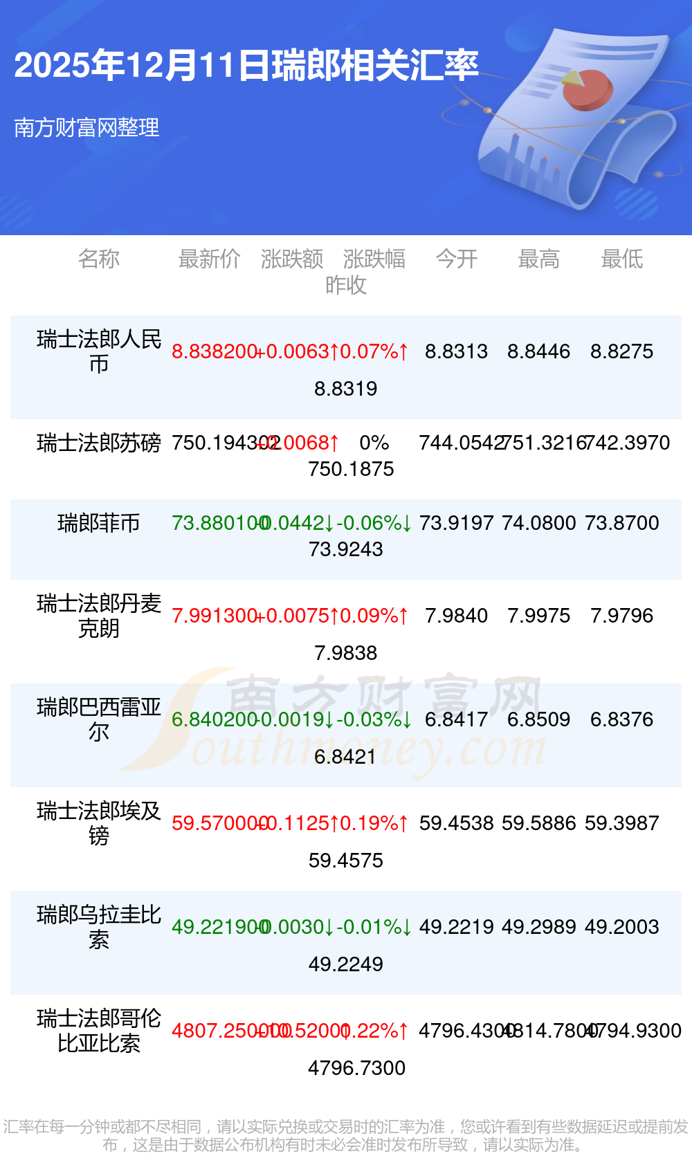 2025年12月11日瑞郎相关汇率查询