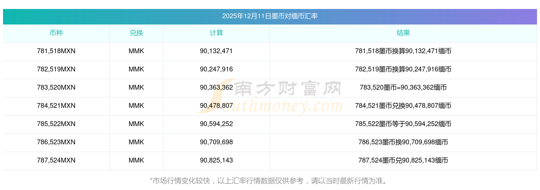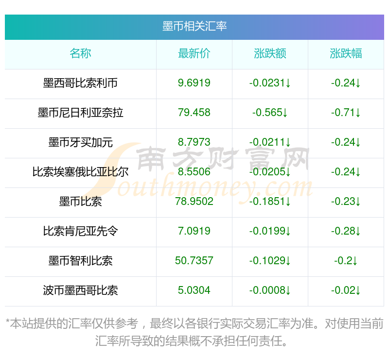 南方财富网为您提供墨币对缅币汇率最新价格详情。