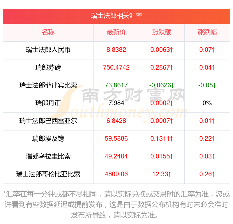 南方财富网为您提供瑞士法郎对泰国币汇率最新价格详情。