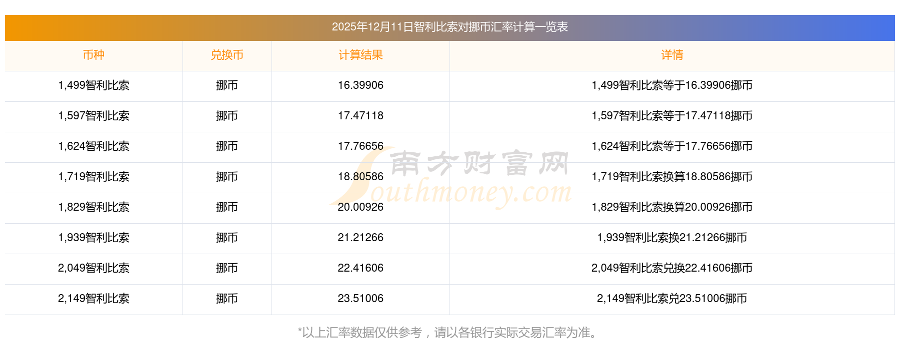 2025年12月11日智利比索与挪币的兑换汇率计算如下: