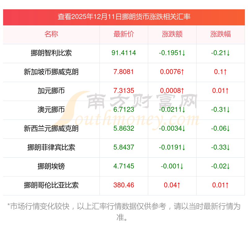2025年12月11日挪朗相关汇率查询