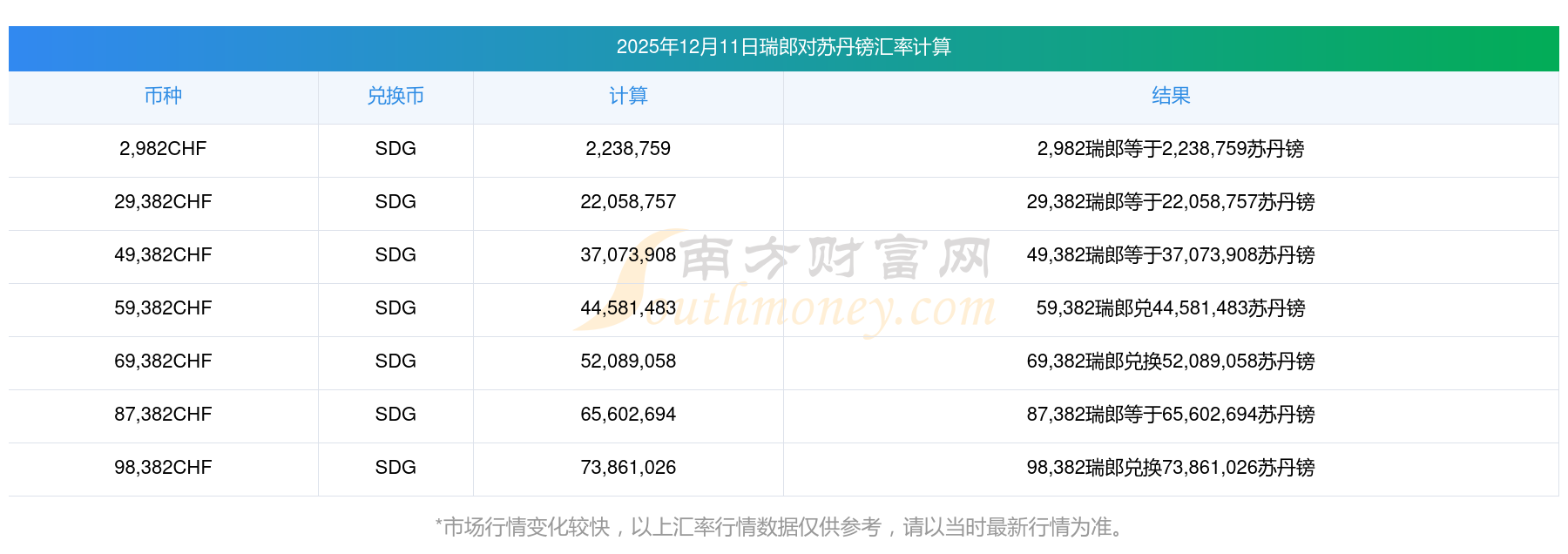 南方财富网为您提供瑞郎对苏丹镑汇率最新价格详情。