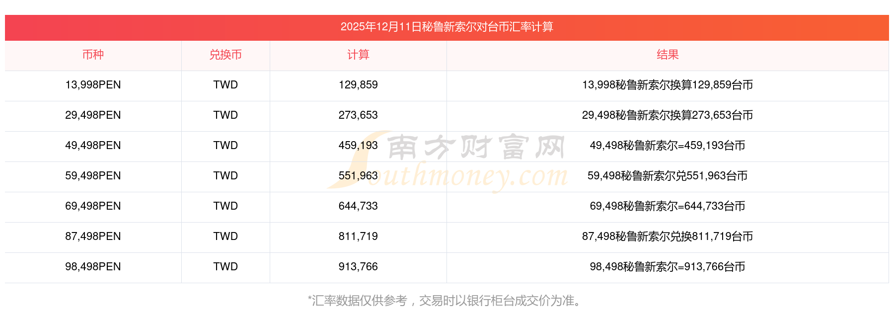 汇率新调整 今天13秘鲁新索尔兑换台币汇率行情? 2025/12/11