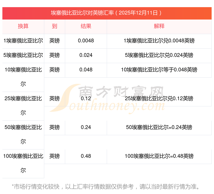 今天埃塞俄比亚比尔购汇行情:350埃塞俄比亚比尔对英镑汇率多少?2025-12-11