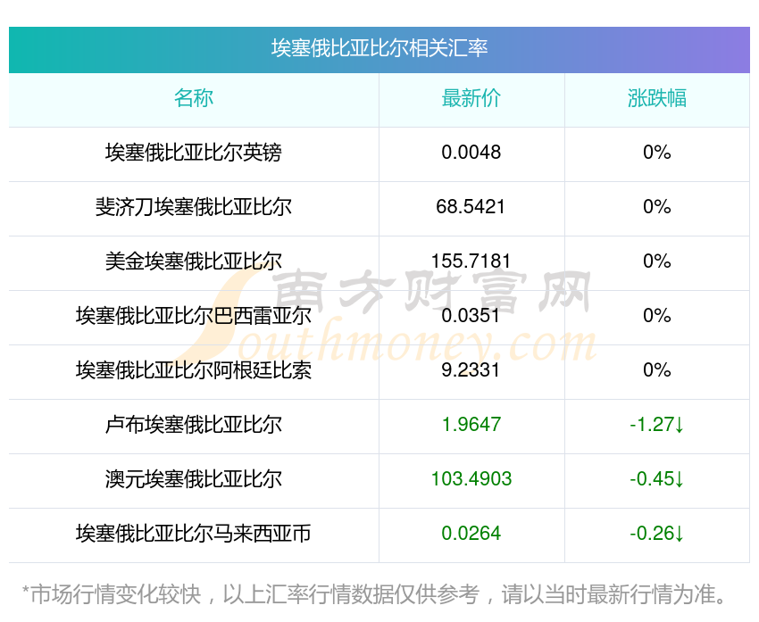 南方财富网为您提供埃塞俄比亚比尔对英镑汇率最新价格详情。
