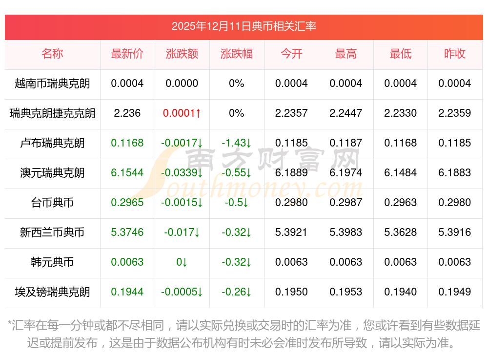 2025年12月11日典币兑换墨西哥比索最新汇率:1.964500,今开:1.9606,昨收:1.9607,最高:1.9694,最低:1.9565。