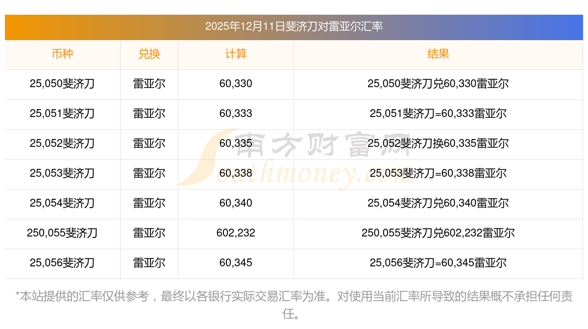 每日汇率查询_用斐济刀对雷亚尔汇率表2025/12/11