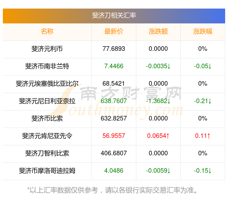 南方财富网为您提供斐济刀对雷亚尔汇率最新价格详情。