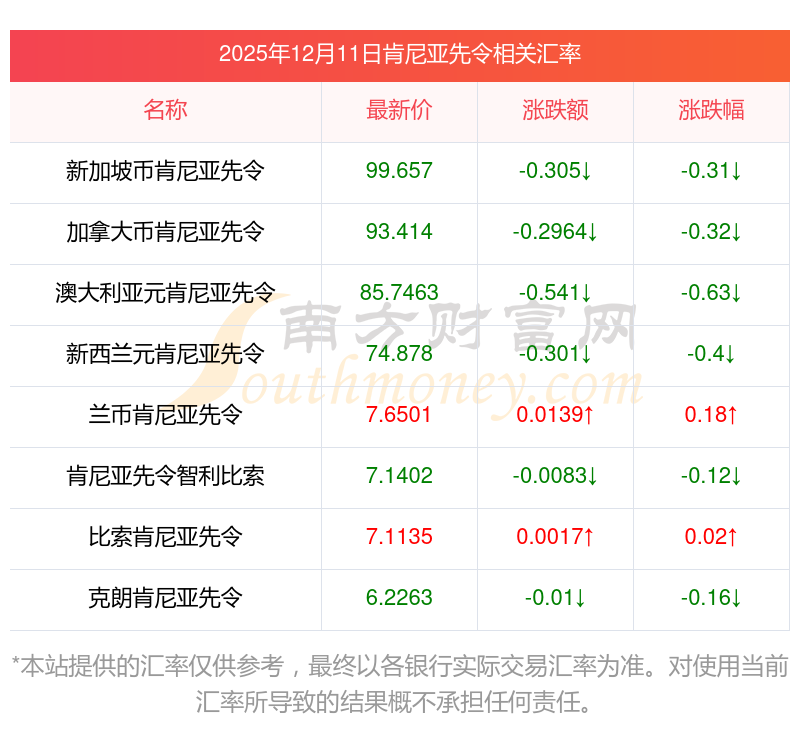 南方财富网为您提供肯尼亚先令对兰币汇率最新价格详情。