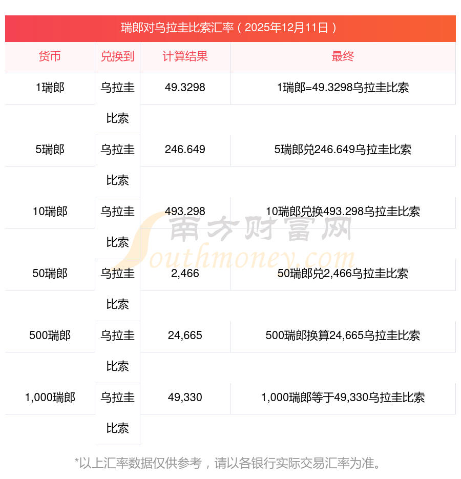 南方财富网为您提供瑞郎对乌拉圭比索汇率最新价格详情。