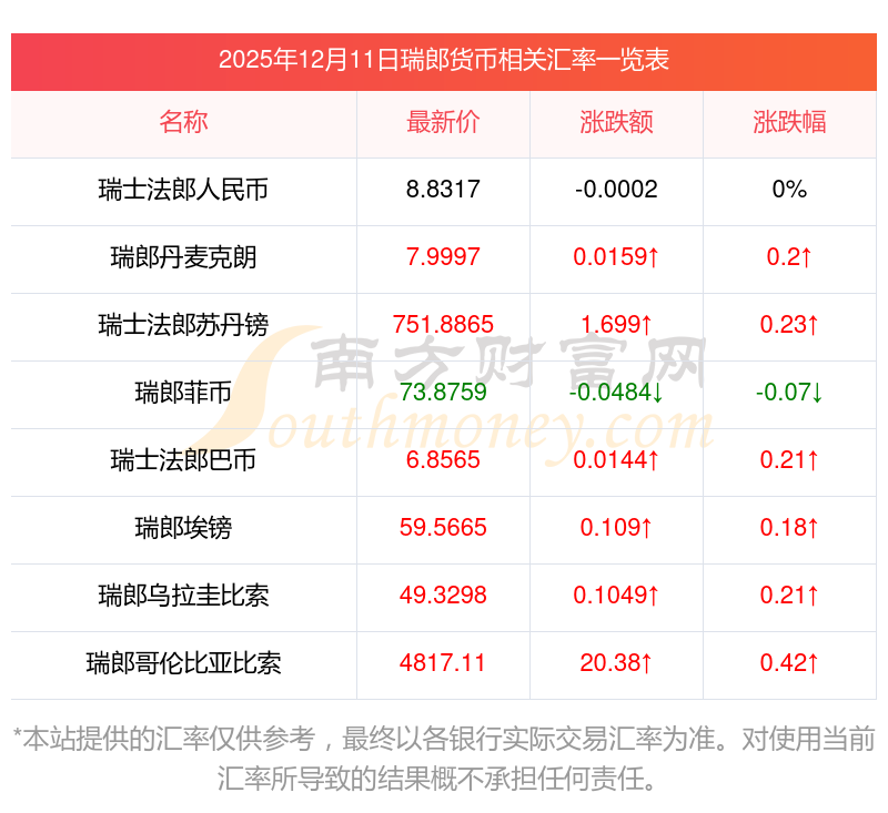 今天瑞郎购汇行情:380瑞郎对乌拉圭比索汇率多少?12-11