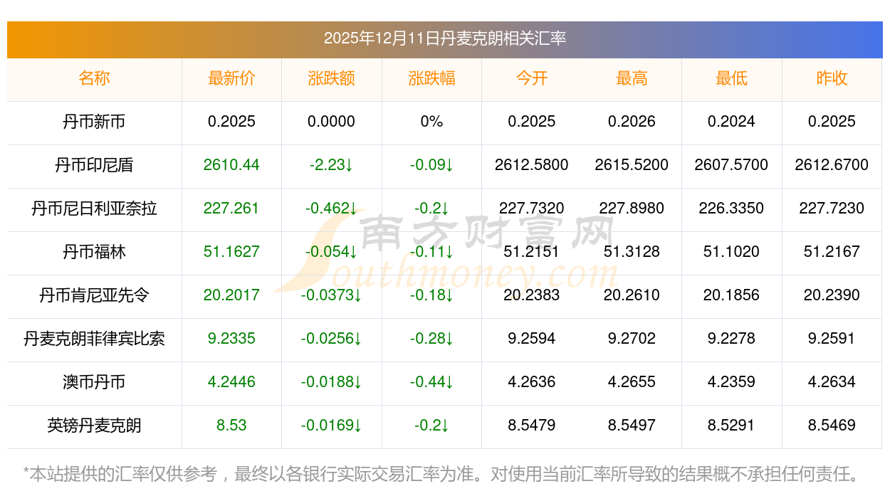 根据2025年12月11日汇率计算,丹麦克朗兑换斐济刀汇率最新价0.356100,今开价0.3558,昨收价0.3558,最高价0.3567,最低价0.3554。