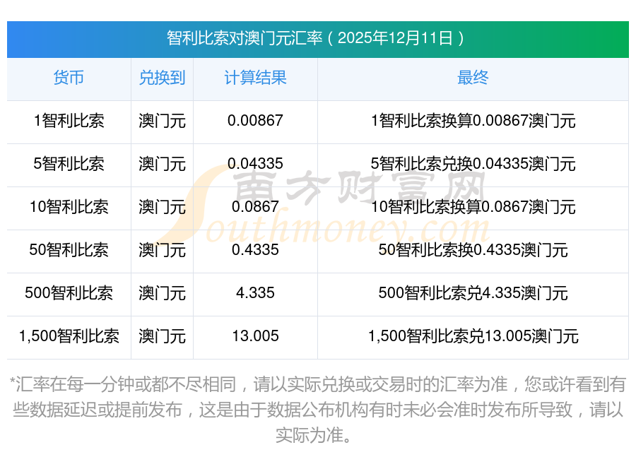 今日智利比索对澳门元_汇率价多少?2025-12-11