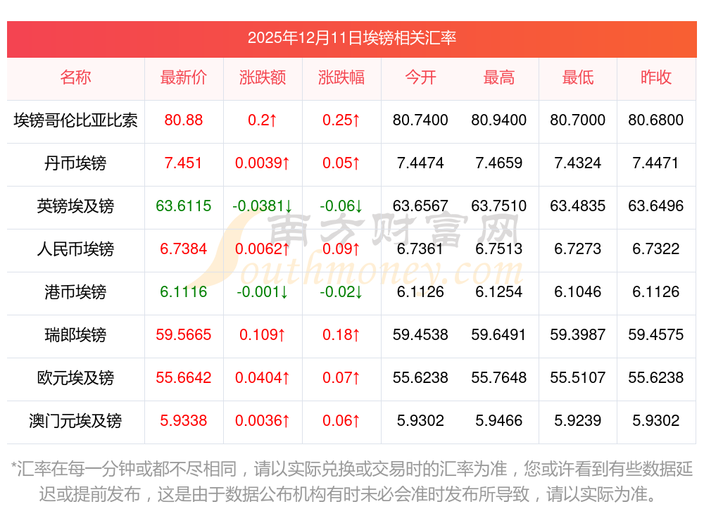 最新汇率调整埃镑兑新币汇率查询表2025-12-11