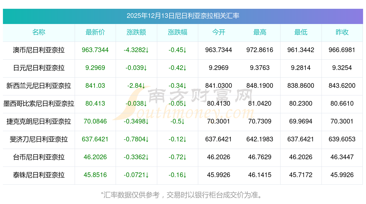 2025年12月13日尼日利亚奈拉相关汇率查询