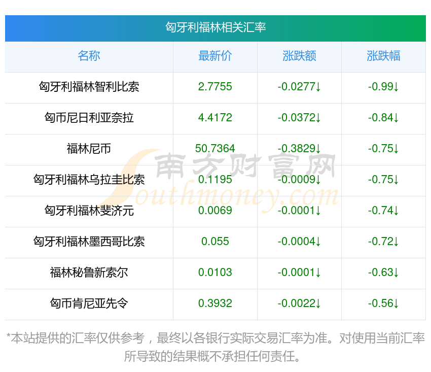 根据今天2025年12月13日汇率计算,HUF兑换MAD汇率最新价0.028010,今开价0.0280,昨收价0.0280,最高价0.0282,最低价0.0279。