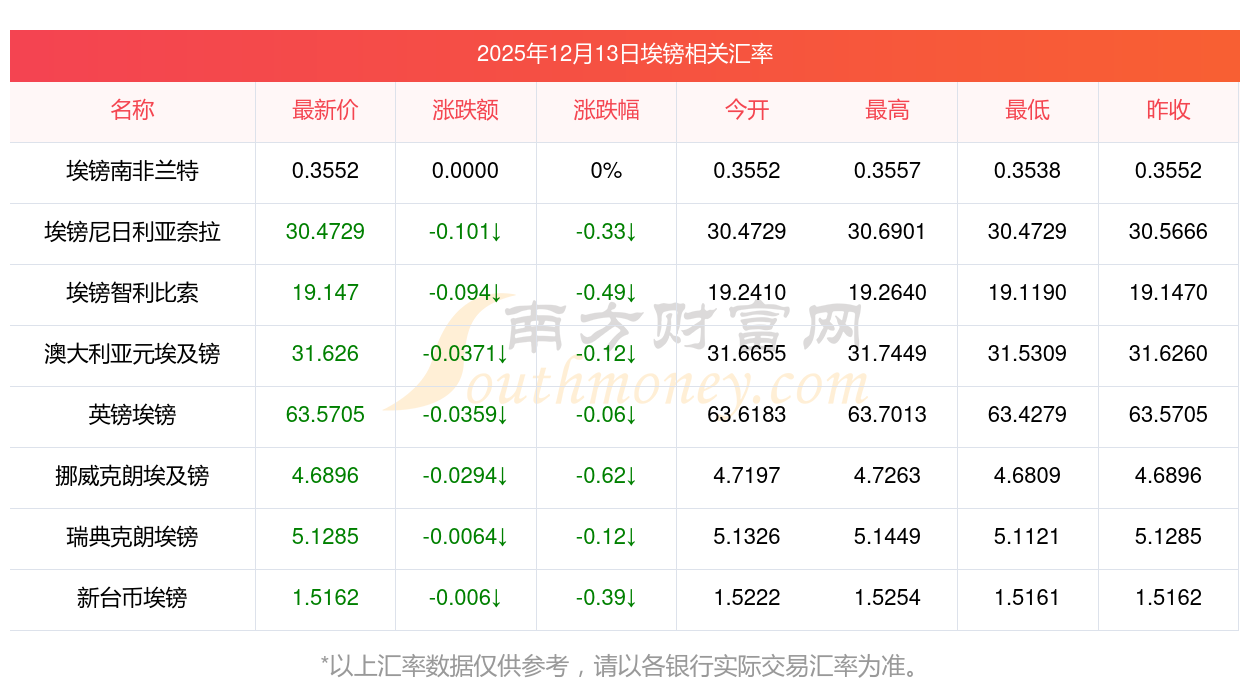根据2025年12月13日汇率,埃镑兑换比索汇率最新价30.306100,今开价30.2167,昨收价30.3061,最高价30.3061,最低价30.1800。